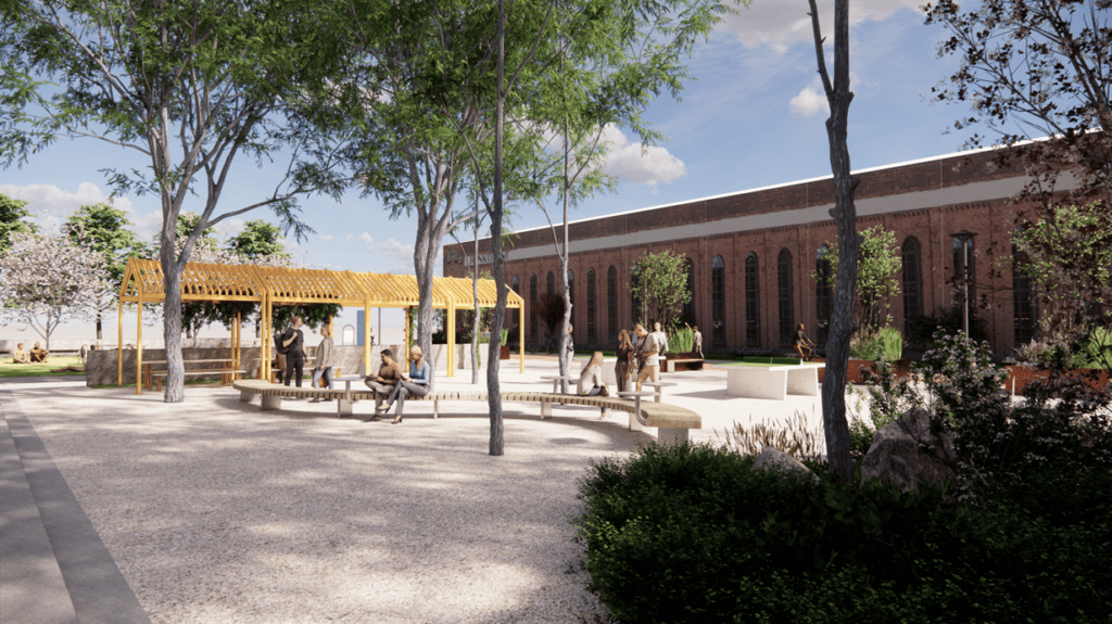 Fler träd, varierad växtlighet och nya sittplatser skapar nya mötesplatser. En tidigare parkering blir en urban park, cykelparkeringarna förbättras och ny belysning ökar tryggheten.