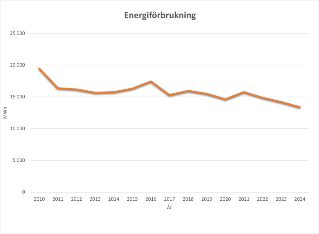 Sedan våren 2010 då vi sjösatte vår stora uppgradering av vår styr och övervakningsanläggning, har vi sparat stora mängder av energi. 2009 var sista året med den gamla anläggningen och de gamla parametrarna som bestämde hur anläggningen skulle fungera. Sedan 2009 har vi sänkt vår energiförbrukning med ett medel över 3000 MWh årligen.